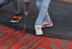 Jeudi 24 et vendredi 25 mars, ils ont relooké la Place de la Chapelle avec l'aide des élèves de l'école communale. Cet échange et collaboration entre artistes et écoliers a été très apprécié par tous et le fruit de leur travail s'intitule " à l'aveuglette".