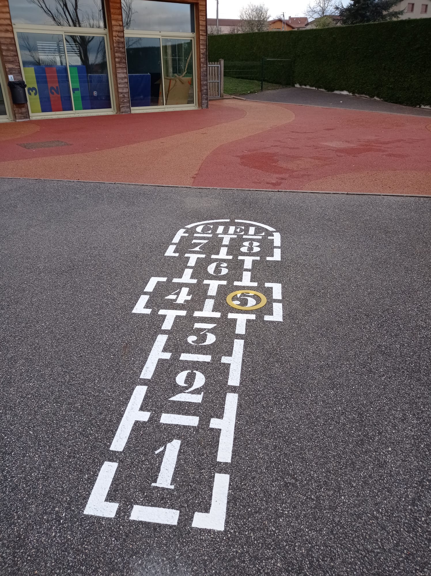 L’entreprise Stineo est en effet intervenue afin de rafraîchir les tracés déjà existants et de dessiner de nouvelles marelles dans la cour : de quoi ravir les enfants !