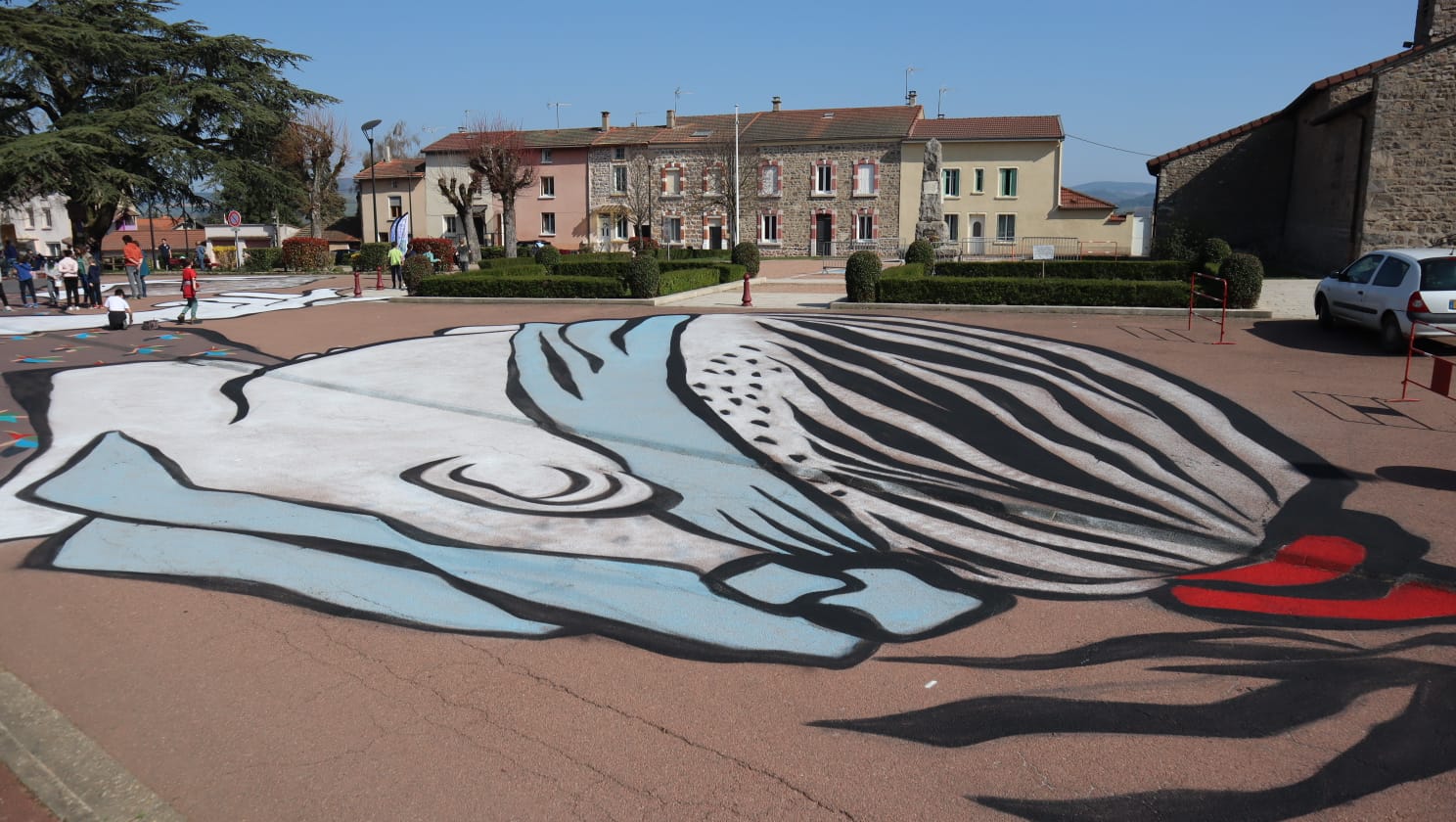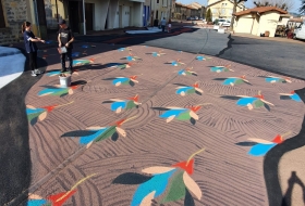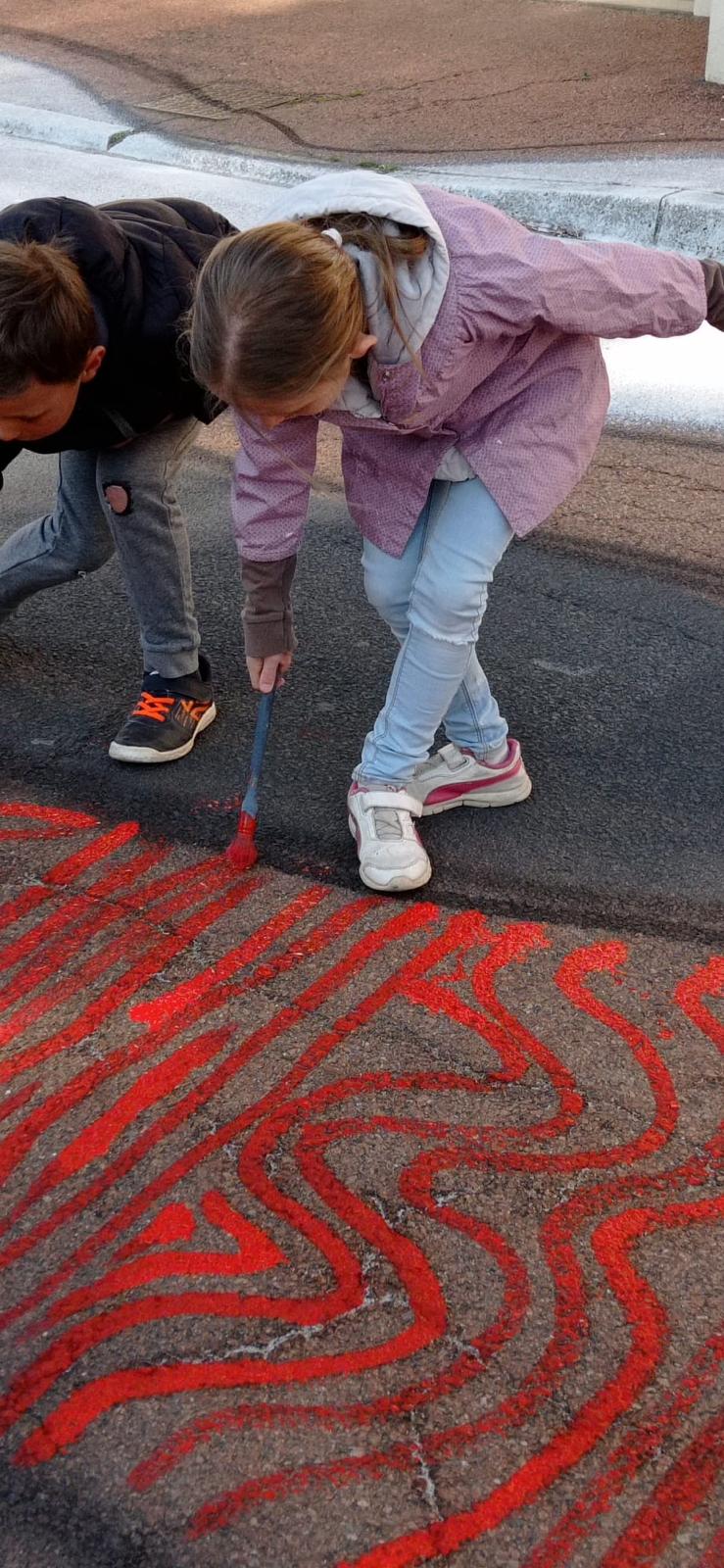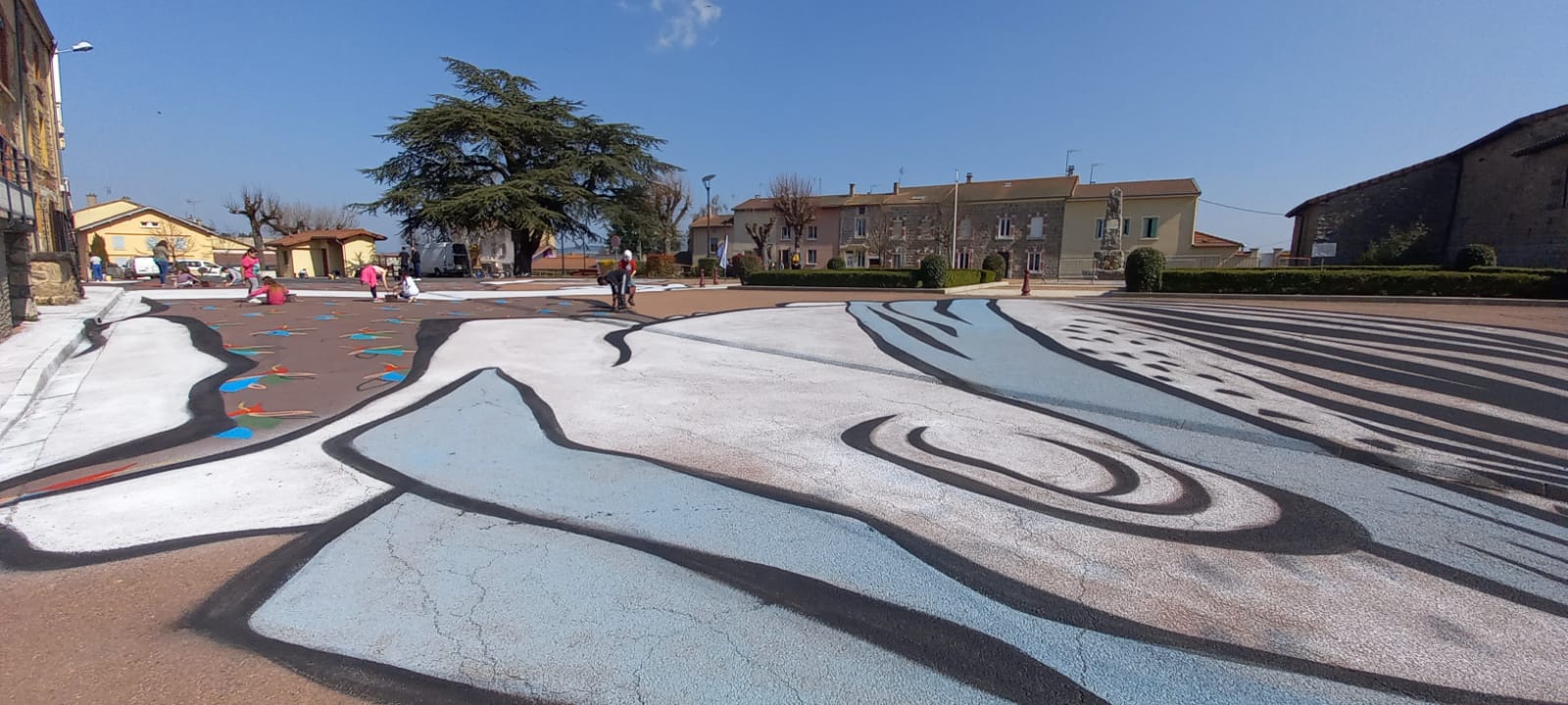 Jeudi 24 et vendredi 25 mars, ils ont relooké la Place de la Chapelle avec l'aide des élèves de l'école communale. Cet échange et collaboration entre artistes et écoliers a été très apprécié par tous et le fruit de leur travail s'intitule " à l'aveuglette".