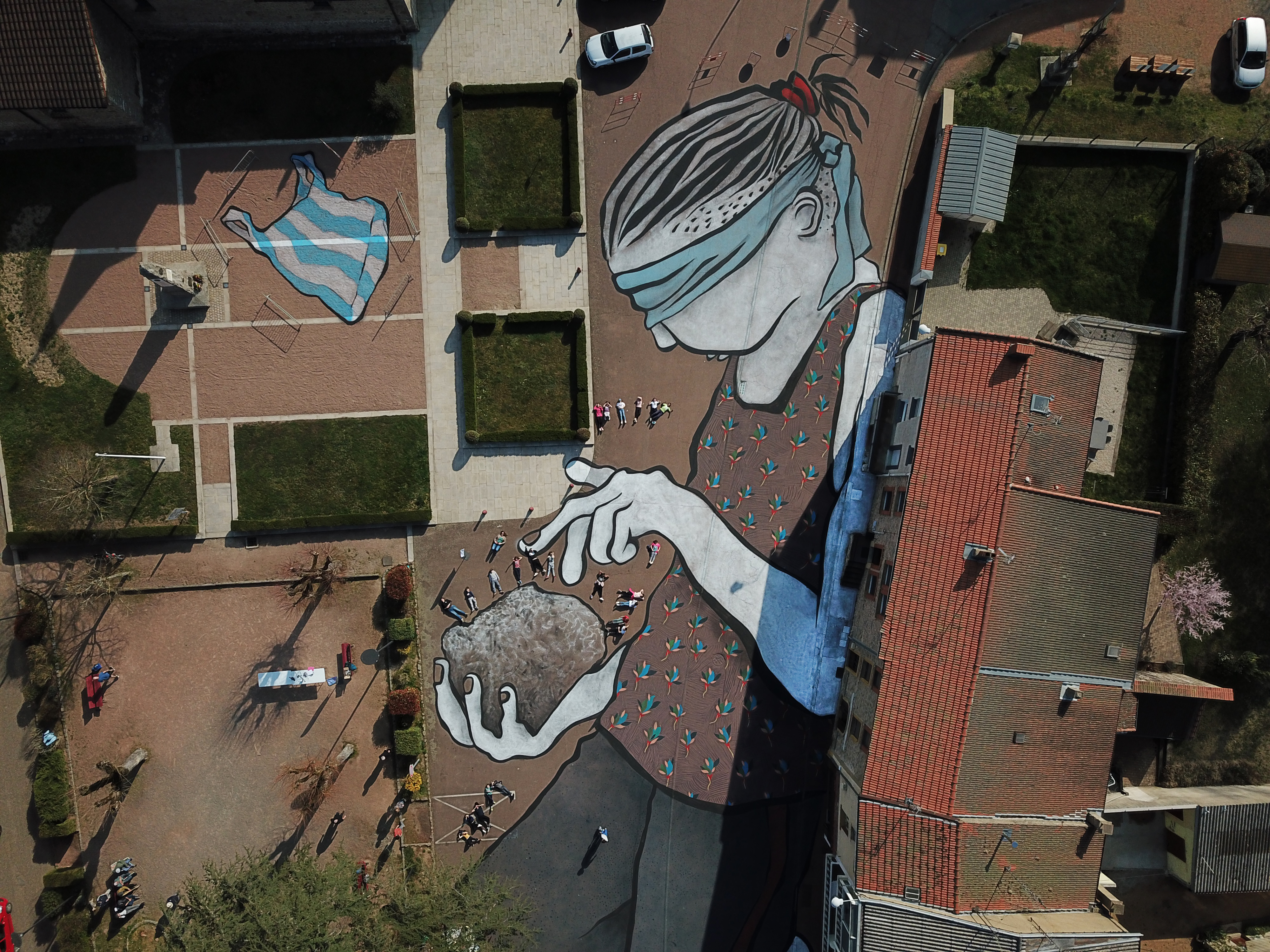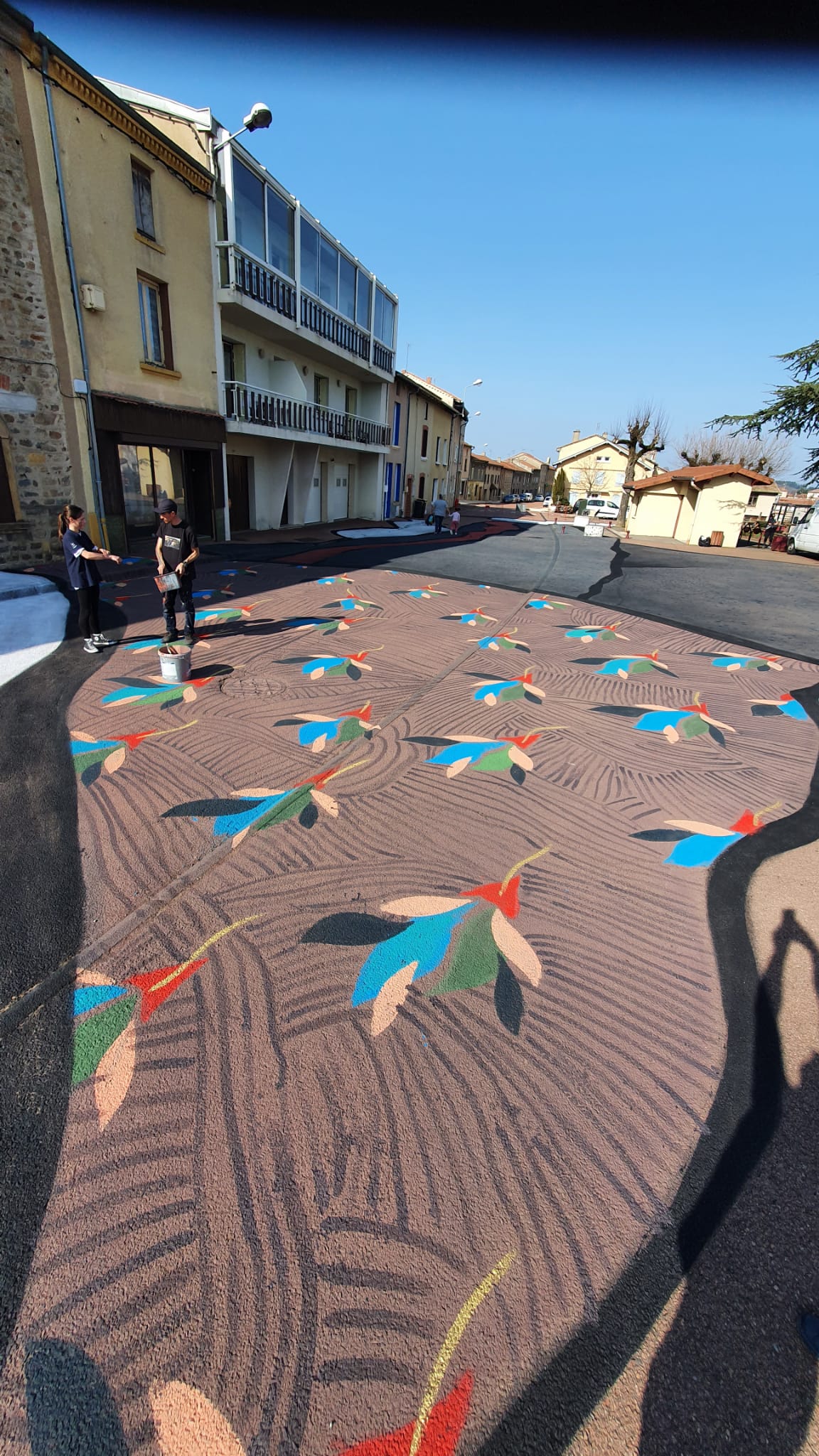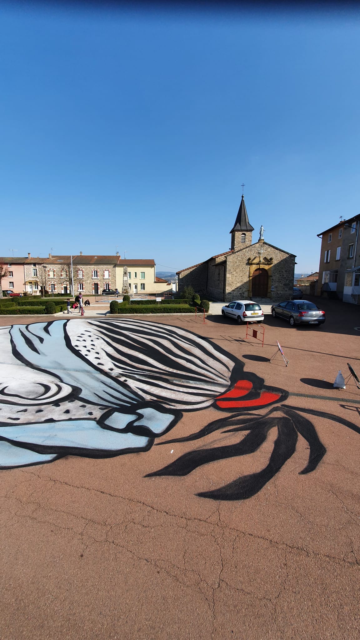 Jeudi 24 et vendredi 25 mars, ils ont relooké la Place de la Chapelle avec l'aide des élèves de l'école communale. Cet échange et collaboration entre artistes et écoliers a été très apprécié par tous et le fruit de leur travail s'intitule " à l'aveuglette".