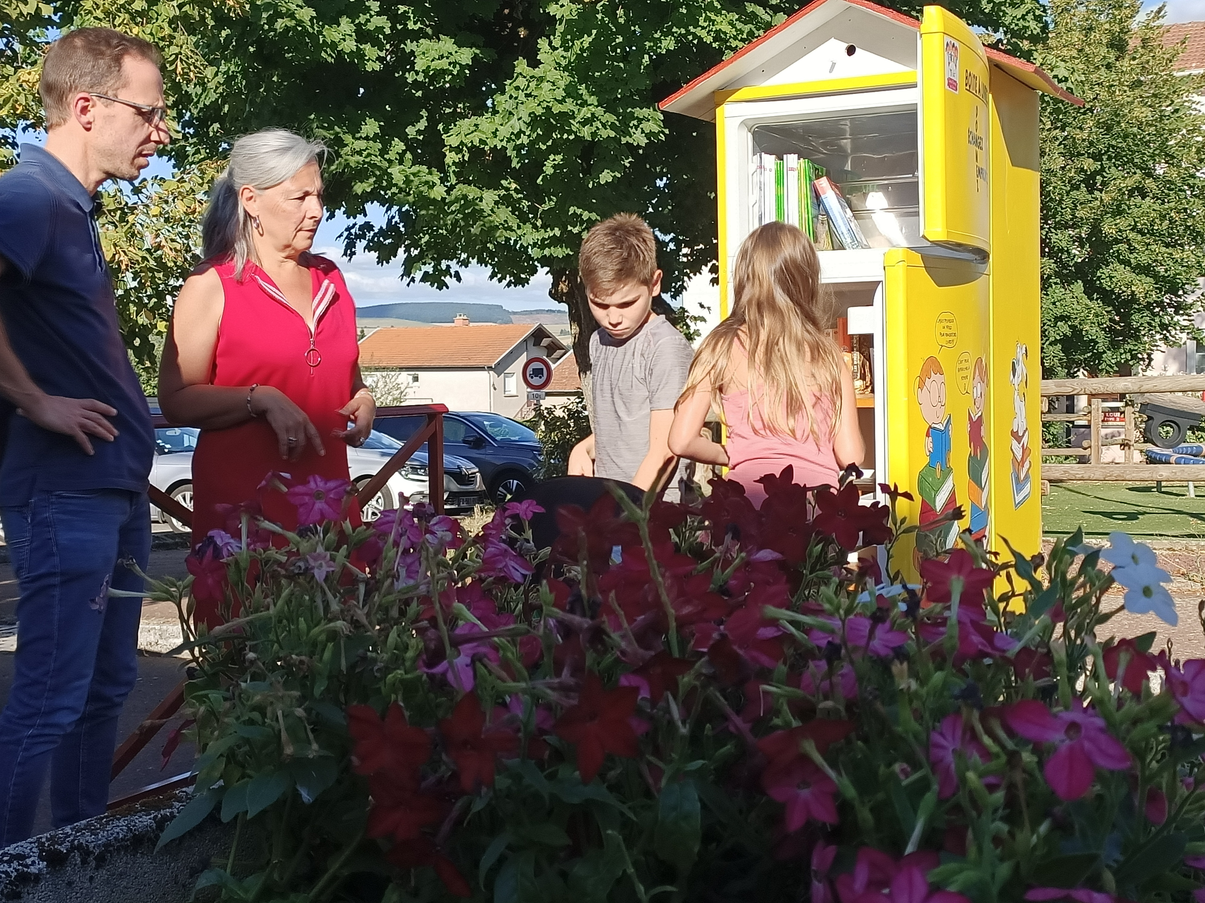 En collaboration avec la bibliothèque municipale, une cinquantaine de livres ont été mis à disposition de chacun. Ils pourront être lus, empruntés, échangés. Selon la place intérieure restante, il sera possible de déposer un livre si le coeur vous en dit .Cette boite à livres, est un complément de la bibliothèque, qui elle, offre un choix beaucoup plus large.