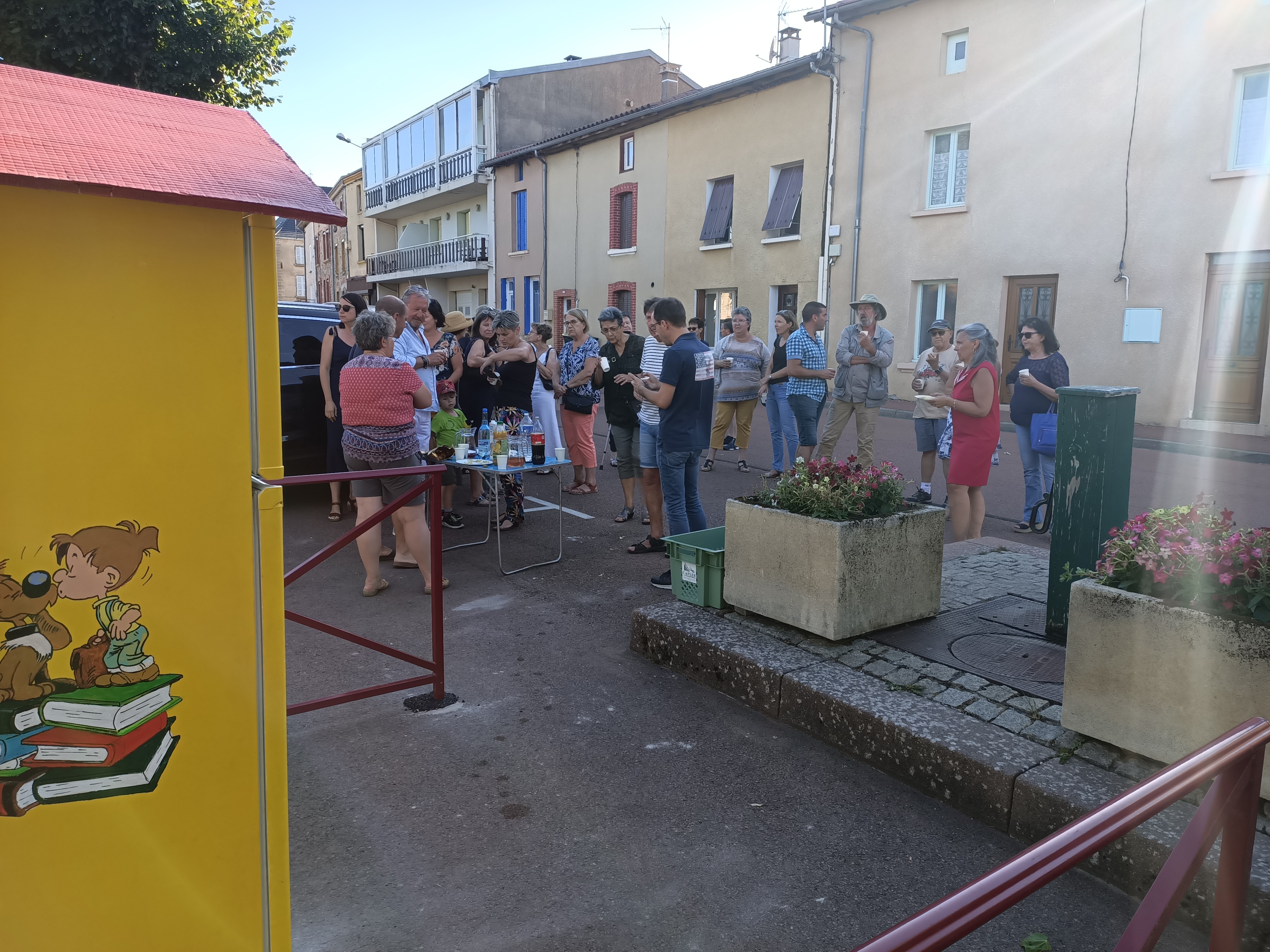 Grâce à leur investissement et celui de la délégation Education Enfance Jeunesse présidée par Marie-Claire Philibert, la place de la chapelle s'est ornée d'un magnifique frigo customisé, d'un jaune flamboyant, décoré de personnages de BD sur chaque face.